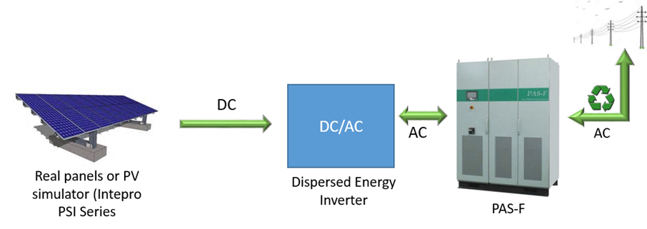 The Test Engineers dilemma when testing dispersed energy products such as PV inverters, Energy Storage systems and wind turbines is that the traditional test set up requires a load in parallel with the EUT and AC source. As a result energy from the EUT is burned into the load creating lost energy in the form of heat. The heat often means building infrastructure like HVAC systems must be updated to cool the laboratory or production floor. The PAS-F grid simulator does not require the parallel load and instead full EUT current is sunk into the AC source and 92% of the power is regenerated back to the utility grid. The PAS-F lowers the total cost of ownership and costly infrastructure upgrades.