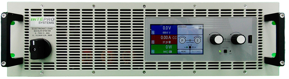 The available voltage range portfolio for the ELR 9000 programmable load goes from models with 0…80 V DC up to models with 0…1500 V DC. Input currents up to 510 amp with only one chassis are available. The series offers three power classes with 3.5 kW, 7 kW or 10.5 kW in only 3U for single devices, which can be extended up to 336kW (or higher) in cabinets for a significantly higher total current. Please contact Intepro systems for higher power solutions.